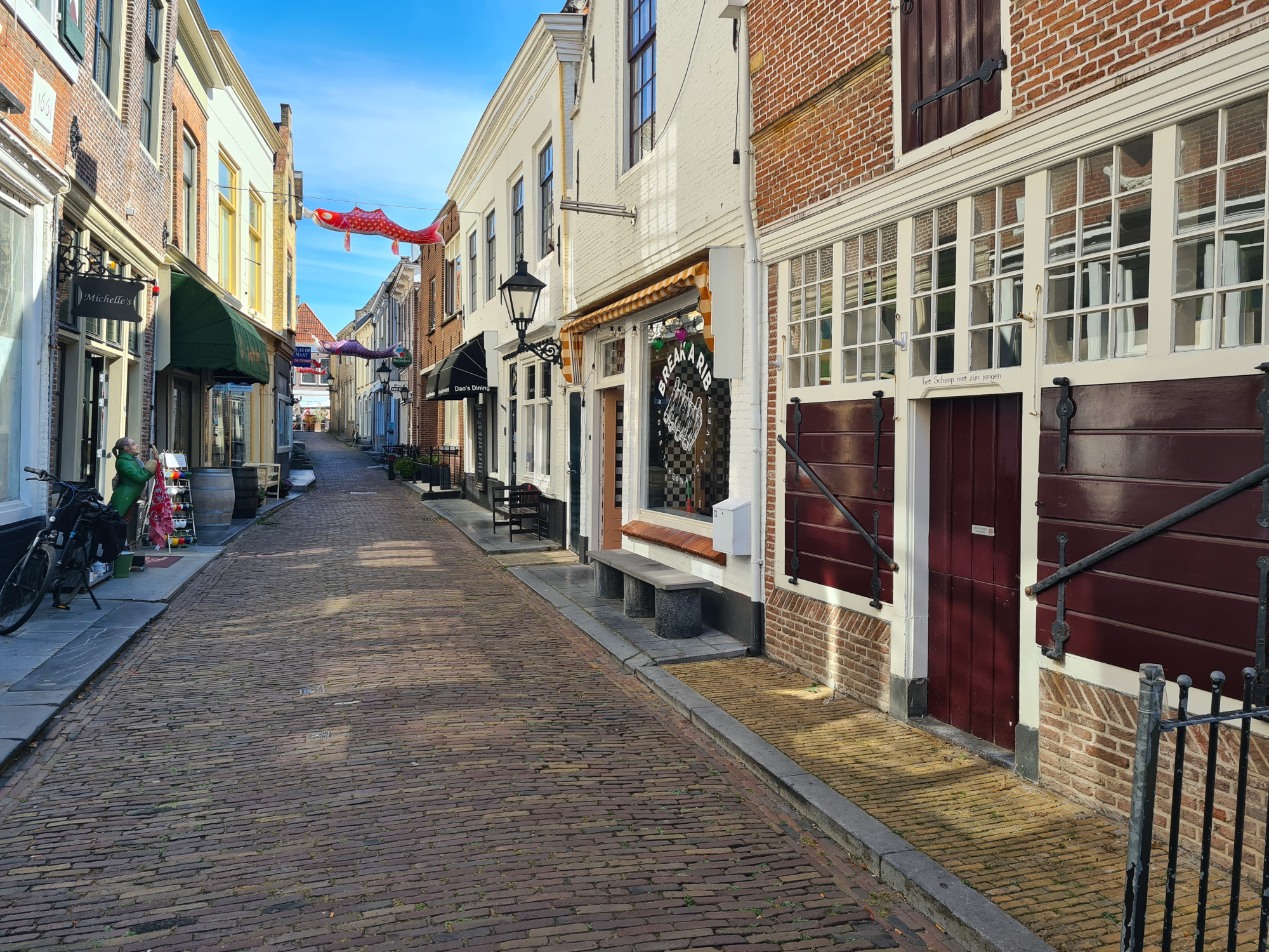 De Visstraat in het altijd drukbezochte Zierikzee is een winkelstraat, die in de ene richting naar het Havenplein leidt en in de andere richting naar de haven. Het ligt er precies tussenin en het is het hart van het monumentenstadje. Zeer geliefd bij de toeristen, die altijd massaal aanwezig zijn.