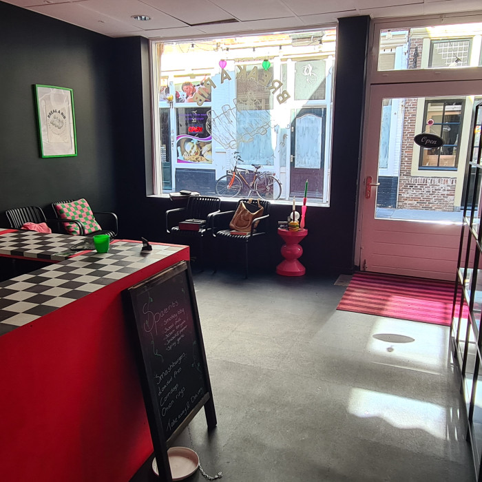 De producten worden bereid in de bakwand en de ovens in het ene pand, afhaal in het andere pand. Lijkt lastig, is het beslist niet!