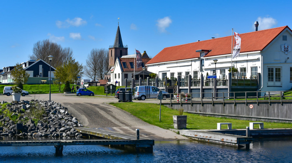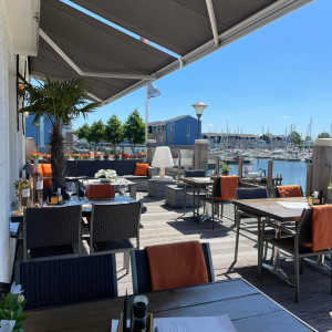 Het vrijstaande pand is breed, waardoor alle zitplaatsen binnen en buiten een goed uitzicht hebben op de haven. Aan de voorzijde is ook een groot parkeerterrein (gratis), zodat gasten nooit ver hoeven te lopen.