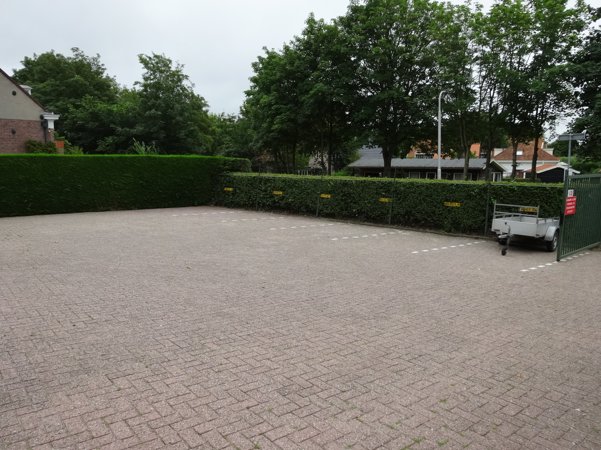Aan de rechterzijde staat een dubbele garage met kantoorruimte. Rechts daarvan bevindt zich het eigen parkeerterrein met carport voor totaal 13 auto’s. Tegenover Zeerust worden 14 parkeerplaatsen gehuurd t.b.v. klanten van Zeerust. Daarnaast zijn er op korte afstand nog in totaal ca. 280 parkeerplaatsen (betaald).